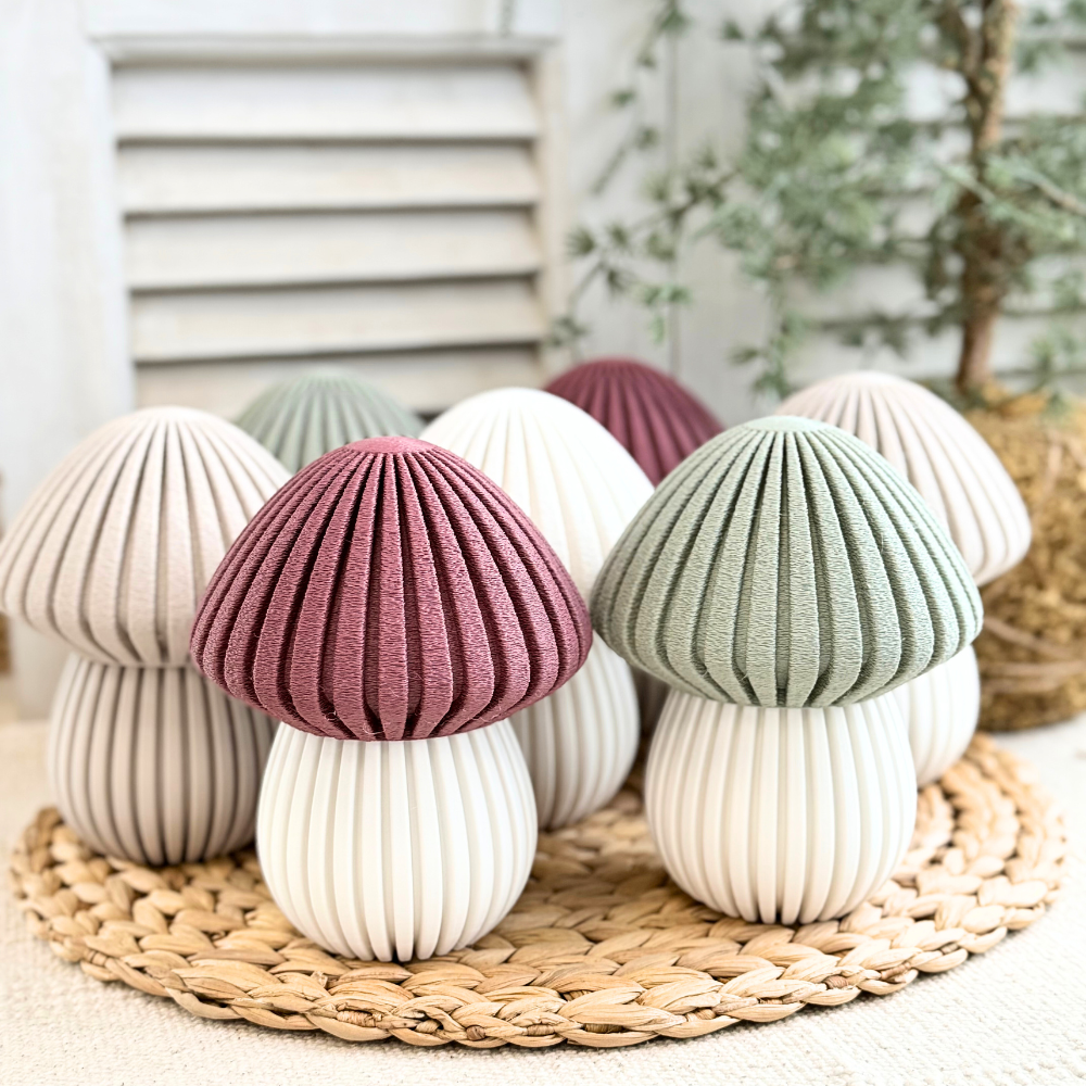 Een minimalistische paddenstoel in Scandinavische stijl, perfect om een warme en gezellige herfstsfeer in huis te brengen. Zet hem alleen of combineer meerdere maten voor een speels effect.